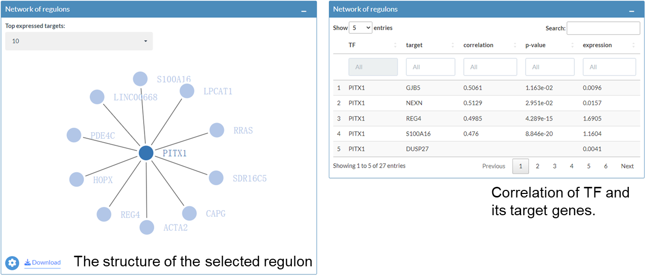 With scIBD, users are also convenient to explore the underlying gene regulatory networks (GRNs) of each cell subtype, and compare the activities of given regulons between health and disease.