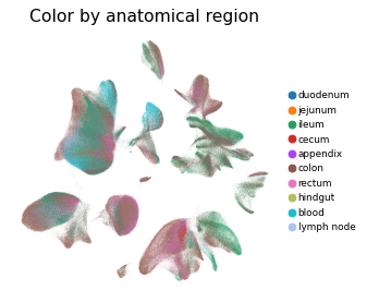 tissues from multiple anatomical regions (includign blood, small intestine and large intestine, etc.) and different disease states (healthy, inflammed UC, inflammed CD, etc.).